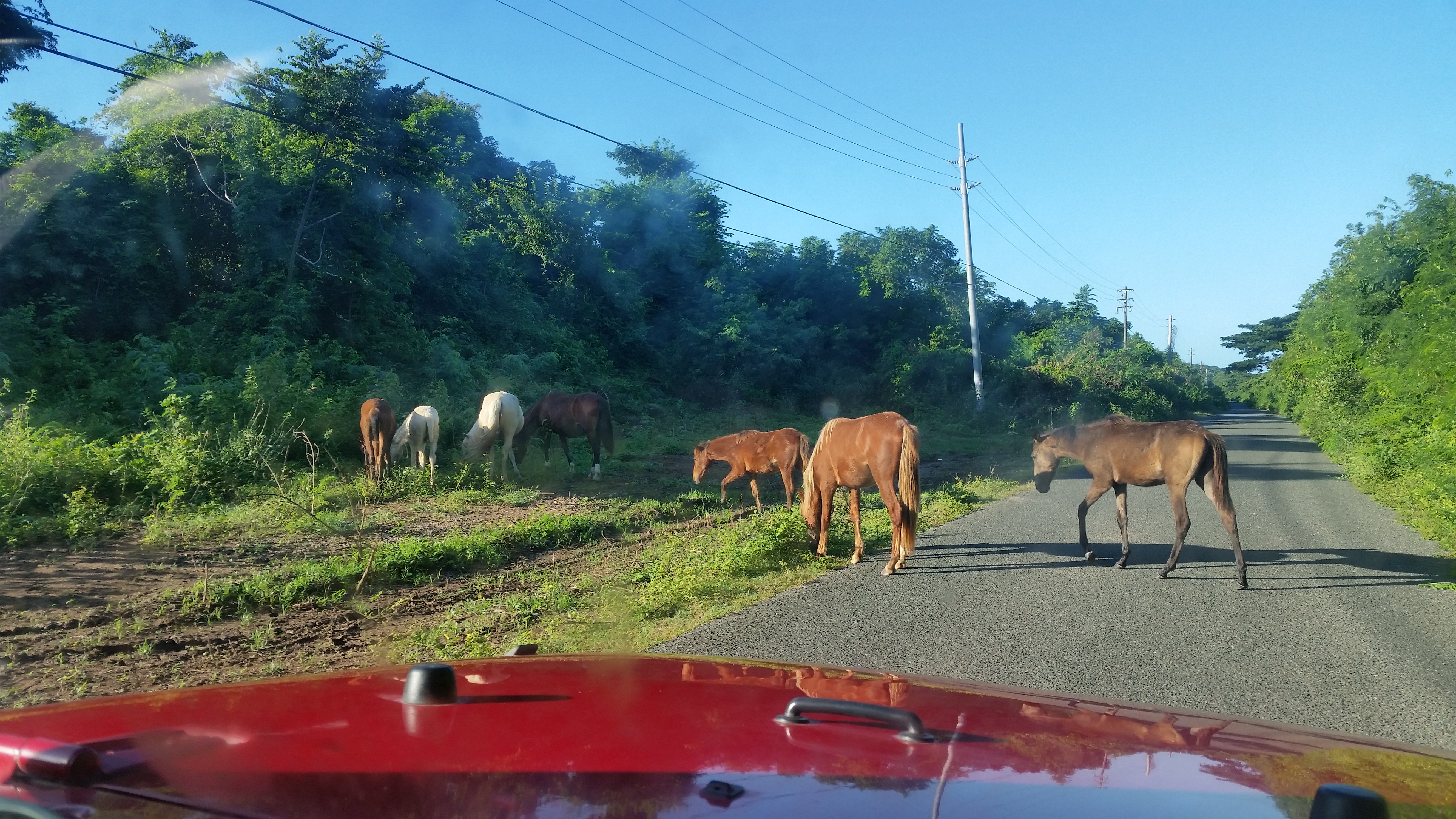 Our corner bakery was open so dos cafés y creole omelets were ordered and consumed and we set off for the Punta Arenas Green beach. Being out and about in the early morning really has it’s benefits. No one on the road, wild horses are still absolutely everywhere, and no one around to ask you why you’re driving up a dirt hill.