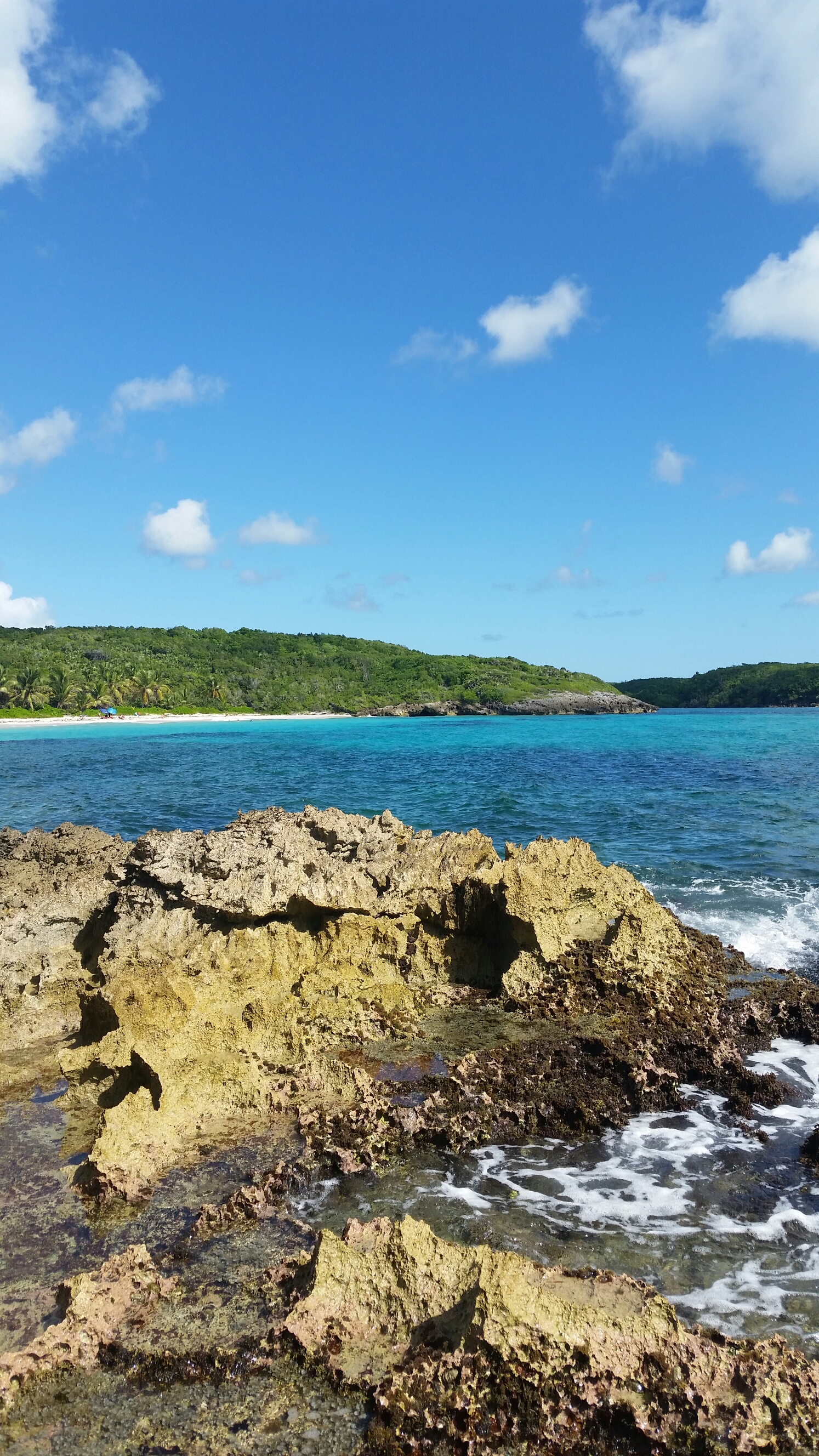 We hadn’t yet been to this beach yet and the lagoon like shape welcomed us. Rocks enclosed either side and after a brief snorkel, we climbed to the right of the beach to scout a cave we had read about. We were able to climb down into the opening, but not able to step inside, for the waves were quite rough. The cave seemed to breathe in and out with the tide, spewing water with each exhale. Very cool!