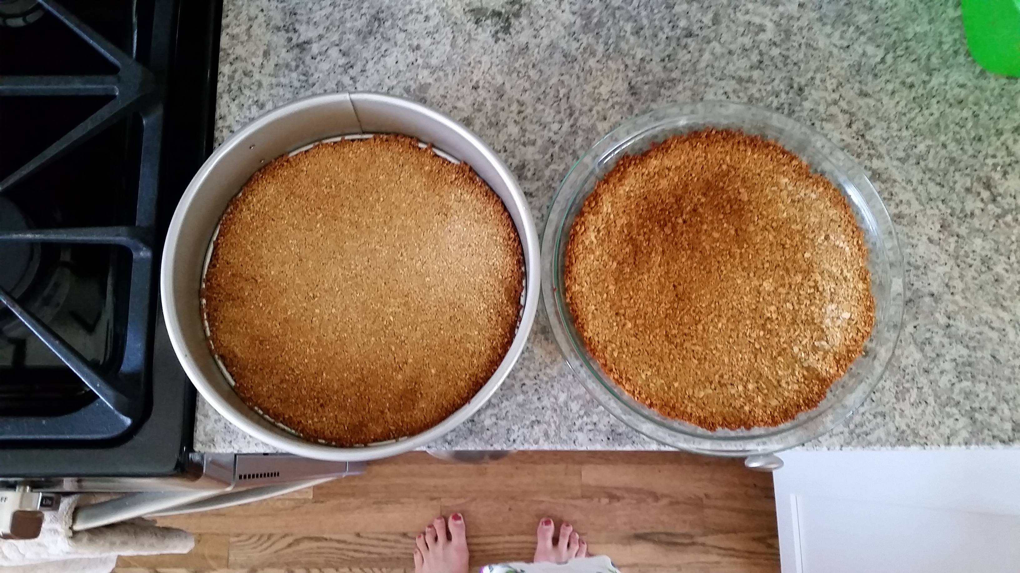 Blend all in a cuisine art (the same one from above! No need to wash). Press into a pie pan and bake for 10-15 minutes at 375.