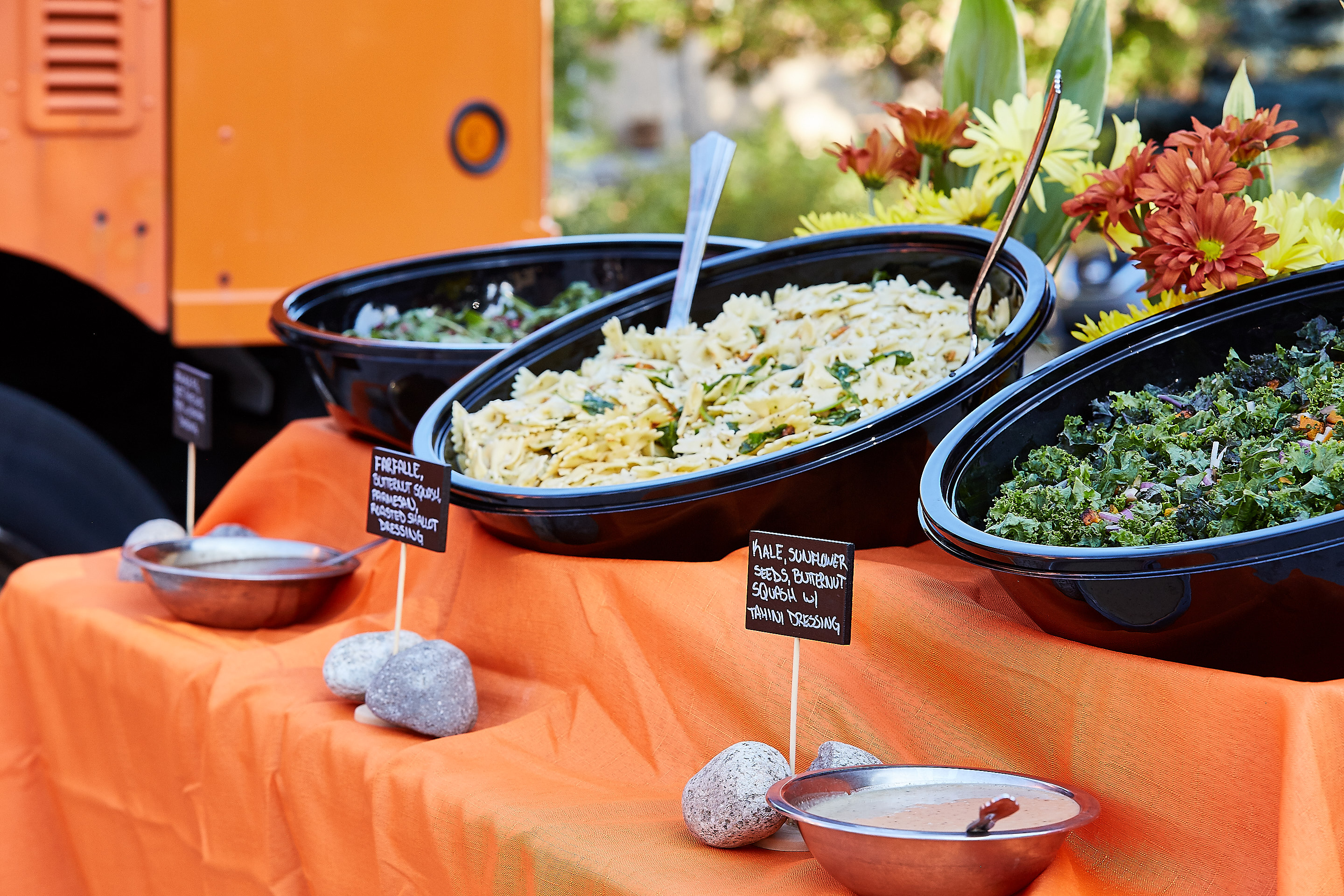 The afternoon of the rehearsal dinner was spent putting together flower arrangements, setting tables, and hanging with family. I ordered lunch for everyone so we wouldn’t have to worry about stopping to eat. Lori’s Wraps hit the spot and for only $218 we had fresh food, salads, and lemon squares that fed 17 people! The day of the wedding, we had shopped around quite a bit to find the right fit for our backyard extravaganza. Catering was several thousands of dollars, so we looked at a few food trucks. Wong Way Veg hit it out the park! Not only did she have amazingly fresh, vegetarian cuisine, she was a true advocate for the cause, donating her whole deposit to local animal sanctuaries. I loved her! And so did our guests. We gave our guests several options to choose from: a Philly Cheesesteak made with portabello mushrooms, a Bajan BBQ burger, or sweet potato tacos – all coming with veggie tots. On the side, we had three spring salads to choose from for that fresh flavor. For our appetizers, she made BLT skewers with mushrooms instead of bacon, veggie spring rolls with dipping sauce, and a goat cheese spread from the local animal sanctuary. Everything was delicious – and people didn’t miss the meat! Including a huge tip and the deposit, I spent $1,367.50 on the food for our wedding!