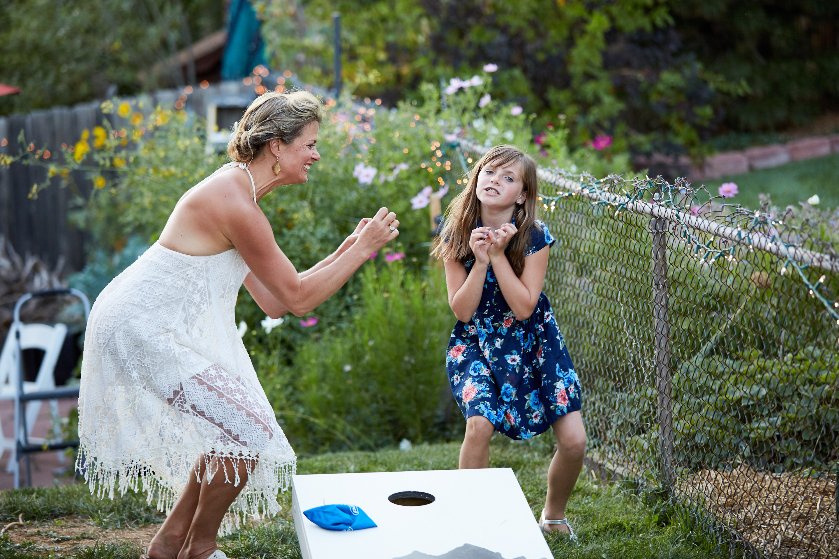 Before the sun went down, we had corn-hole set up on the side yard – a homemade set Mike made and I painted. The mountains of Colorado faced us and my niece and nephew played and had a blast!