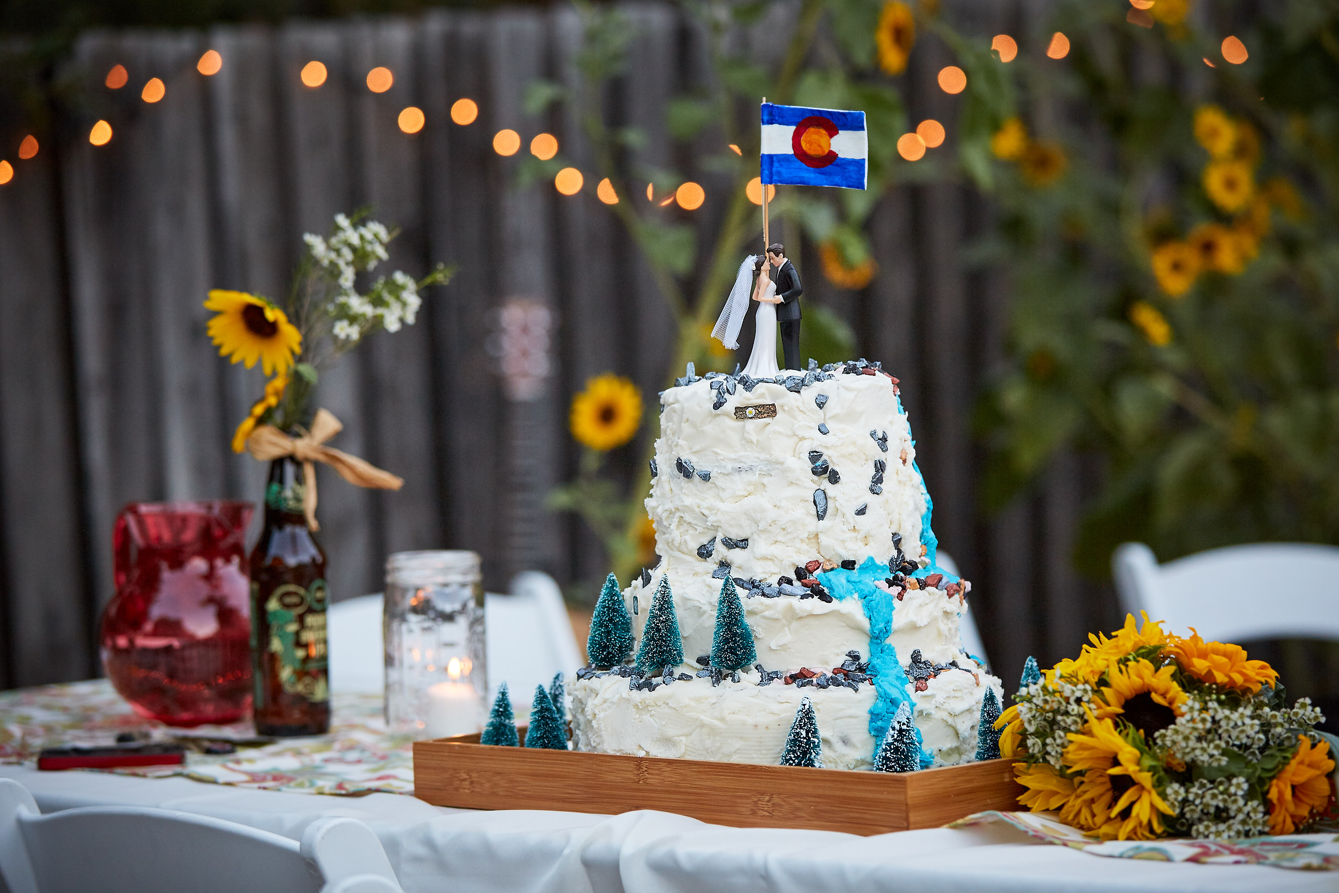 I looked into special bakeries to make our cake – and Mike even said that he’d order one or two from Clint’s (a bakery up in Breckenridge) – but knowing we wanted a carrot cake made me turn once again to my mom. She makes The. Best. Carrot. Cake. Ever. And holy smokes did she go above and beyond! She made our mountain cake from scratch and even had rocks, a river, trees, and the Colorado flag! It was by far the coolest cake I had ever seen. And again, because she made it, we saved tons! Our lower yard area served as a Smore’s bar as the night went on and the lights dimmed. We lit a fire in our fire pit and had a ton of gourmet chocolate and vegan marshmallows for people to make their own smores. I think it was a hit!