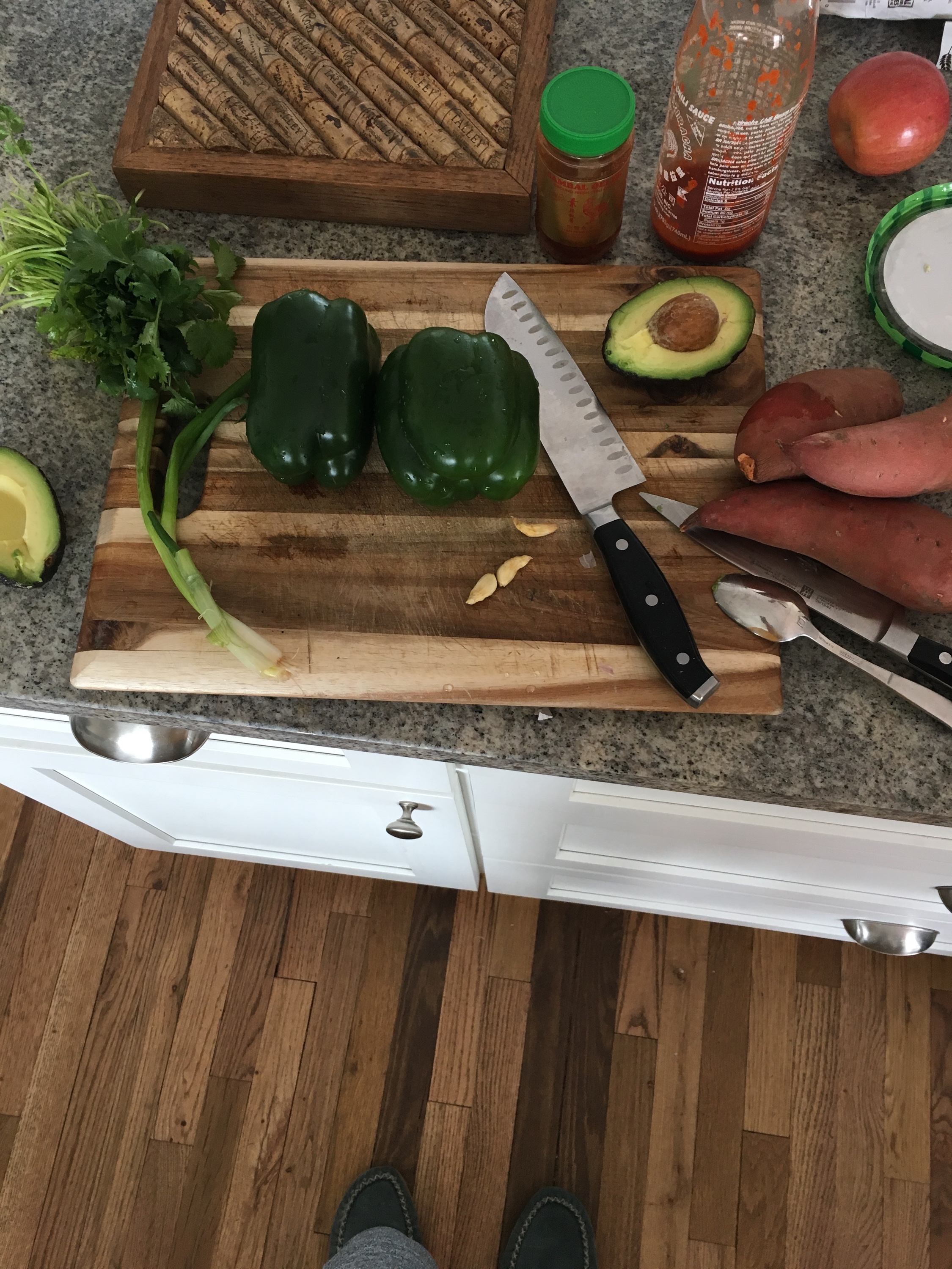 So, this weekend I managed to do a bit of yard work, listed my rental property back in Conshohocken, went to Longmont to see Frantz (a film that’s part of the Boulder International Film Festival) with my mom & sister, and spent a lot of time hobbling around the kitchen. For Sunday Funday, I decided to make two dishes to prep for the week: Spicy Thai Sweet Potato Stuffed Peppers and Smoky Mushroom & Caramelized Onion Tacos.