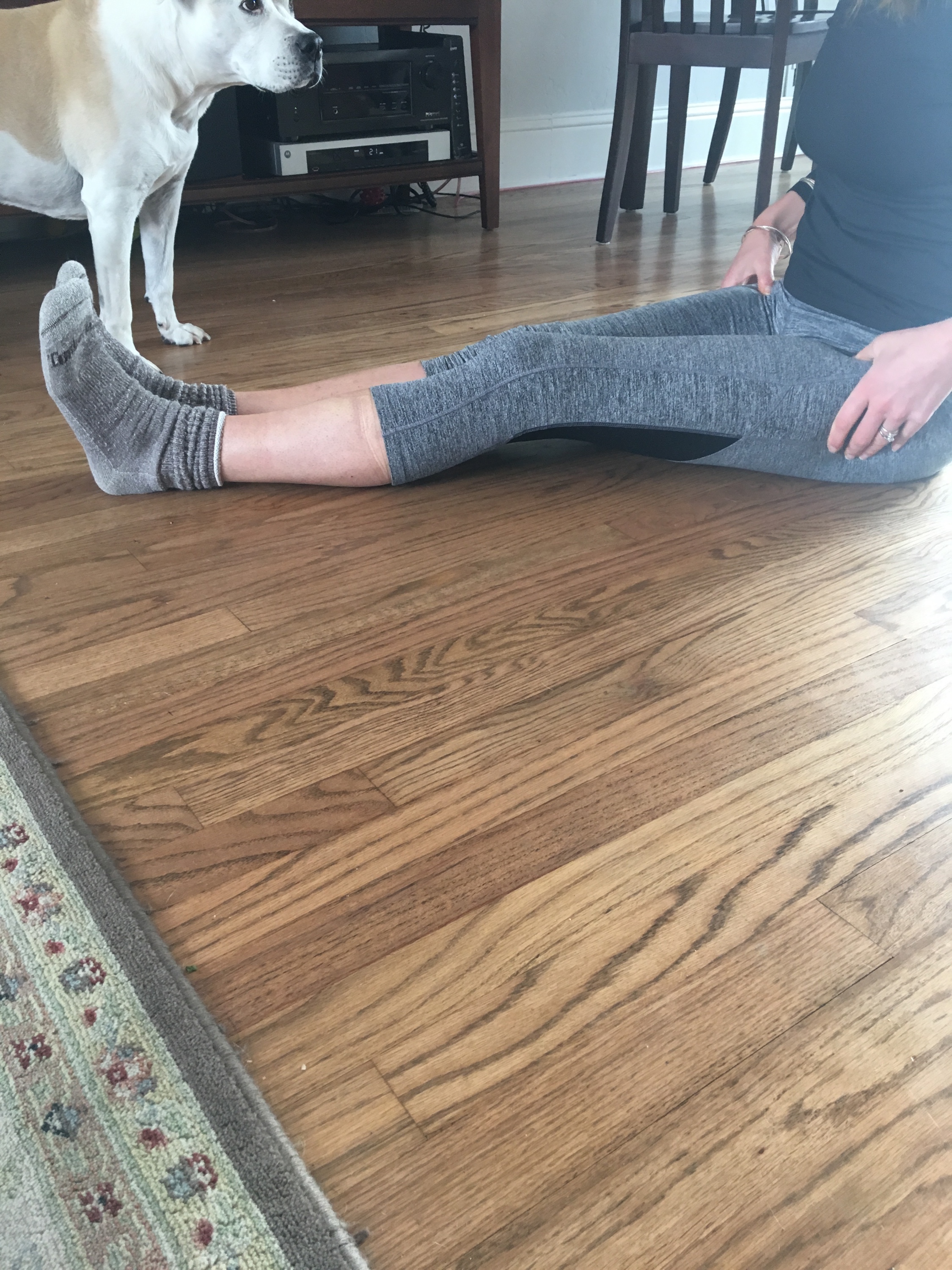 My leg still felt like dead weight – the nerve blocker was apparently more topical because inside it felt like chopped liver, but still felt tingly on the outside. Let’s just say going to the bathroom isn’t the easiest! The brace they gave me at the surgery center was extremely bulky and cumbersome and hard to move around. The bandages were extremely tight and the drain seemed to be filling quickly. Mike made me get up and walk around to make sure the blood was circulating…watch here!