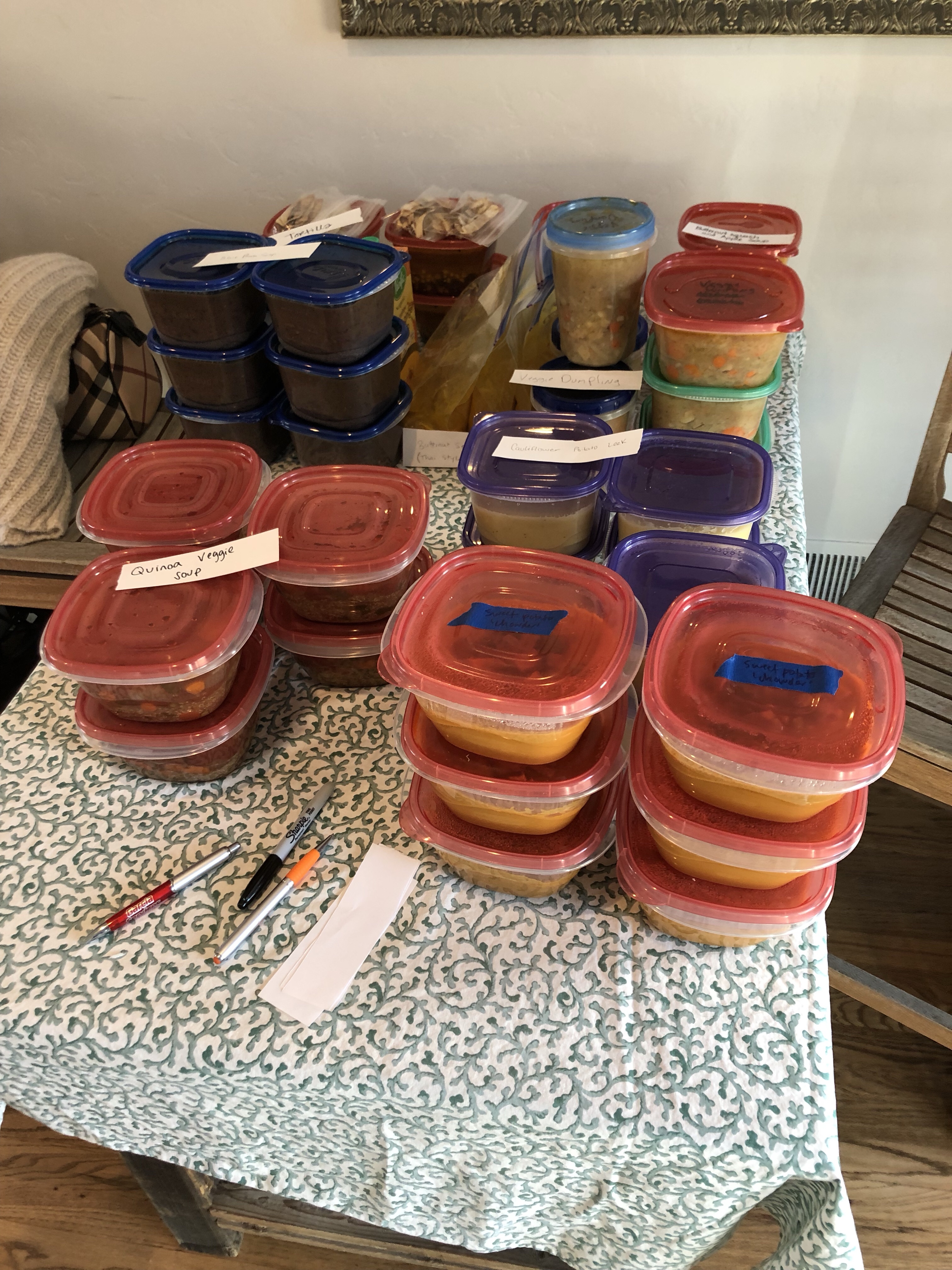 This year’s guests brought tortilla soup, quinoa green chili, cauliflower potato leek soup, black bean, veggie dumpling, quinoa veggie, sweet potato chowder, corn chowder, Thai butternut squash….to name a few. A delicious gathering indeed!