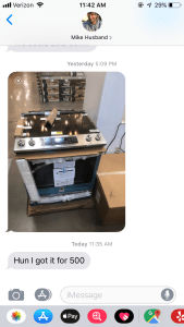 - Negotiated & purchased a new stove for $539. A screaming deal for the stove we purchased! Mike saw it as a return at Lowe’s & asked if they’d knock $100 off. And they did! The lesson: the answer is always No if you don’t ask.
