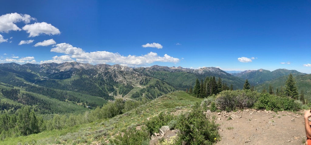Sunday was for Mountain Biking! Our crew had some coffee out back, scarfed some cereal & dropped our RV off at a high school so we could shuttle to the top of Wasatch Crest Trail. Mike noticed the left airbag was low, really really low, so planned to fill it when we got back. After hopping in Ryan’s truck, we headed up into park city, climbing the hills to get to the trailhead that would promise some of the best decent trails we’ve ever had. It was a crowded weekend, with fancy people all about, cars stacked into the parking lots, and blue bird skies. We parked on the road, suited up and began the accent. A bit of the climb was on the road, not ideal, but not horrible. At the top of the hill, we ducked into the woods and were off – the 16+ miles of Crest Trail had some of the most iconic, beautiful vistas of the Wasatch Valley I’ve ever seen – hell, of any valley. This ride had it all – Puke Hill, wild flowers, miles and miles of downhill gloriousness. This was by far my most favorite mountain bike ride to date.