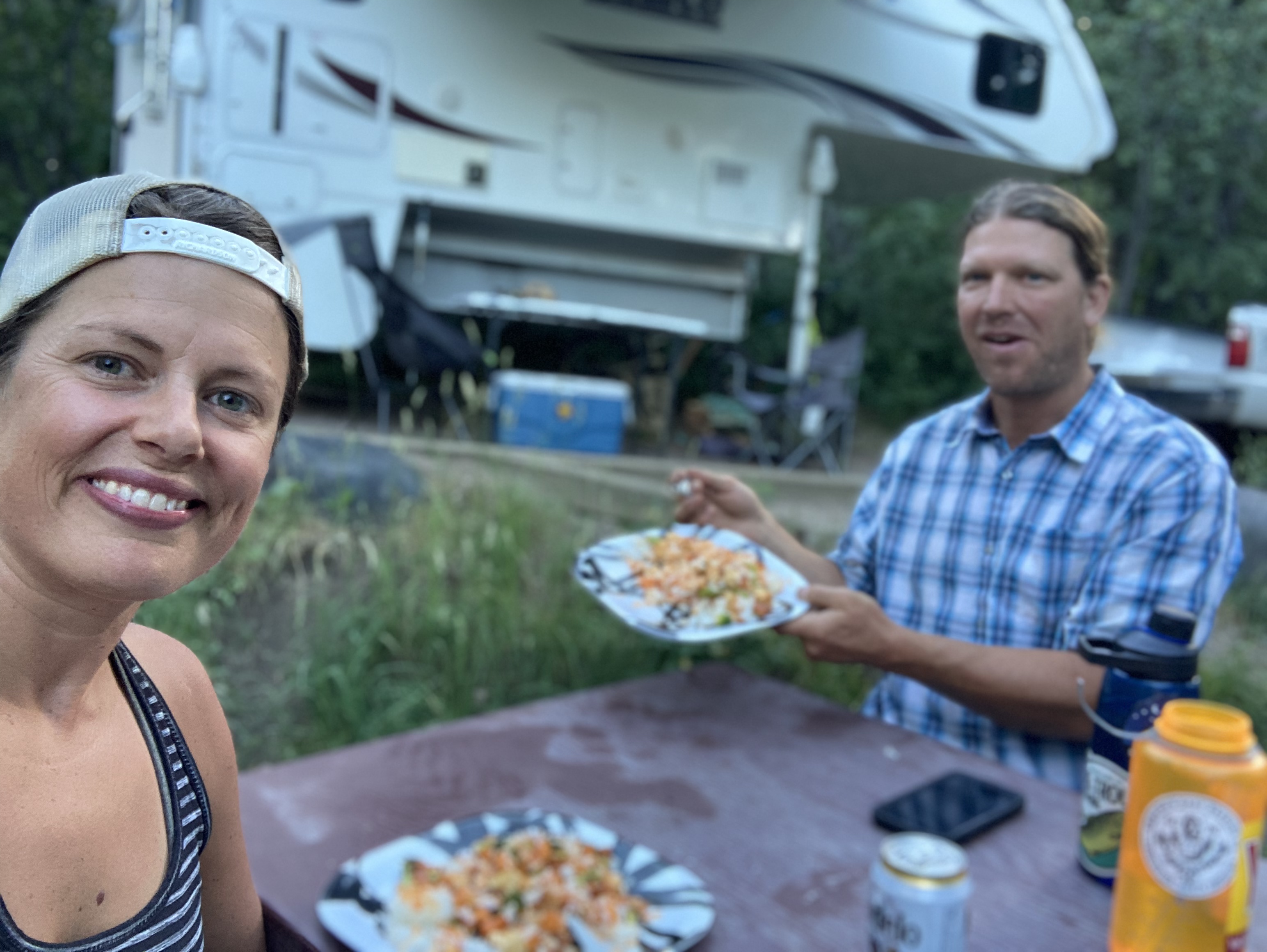 Post ride beers, we headed to the grocery for shrimp taco supplies & had a great night in. Mike realized the air bag was in fact faulty – discovery a faulty fitting that was causing air to leak immediately, so he did some research on where he could take it the next day. Thank goodness for friends with houses – cause ours was out of commission. Morning came & I got to work – the beauty of being able to work anywhere – while Mike headed to the RV dealer to sort out the airbags. After several hours of work, a fixed RV, and a hot sweaty mountain bike ride, we packed it up and headed west. Due to the camper issues, yet again, we decided to head to an Idaho destination that was several hours closer than our original destination, McCall. Unfortunately, I hadn’t done any research of the area Mike chose, but that’s the beauty of Camper Life – to be spontaneous and nimble! He found a great campsite with WiFi, close to mountain biking trails and the town Pocatello, which I had never heard of! It was about two and a half hours from Park city – which was great!