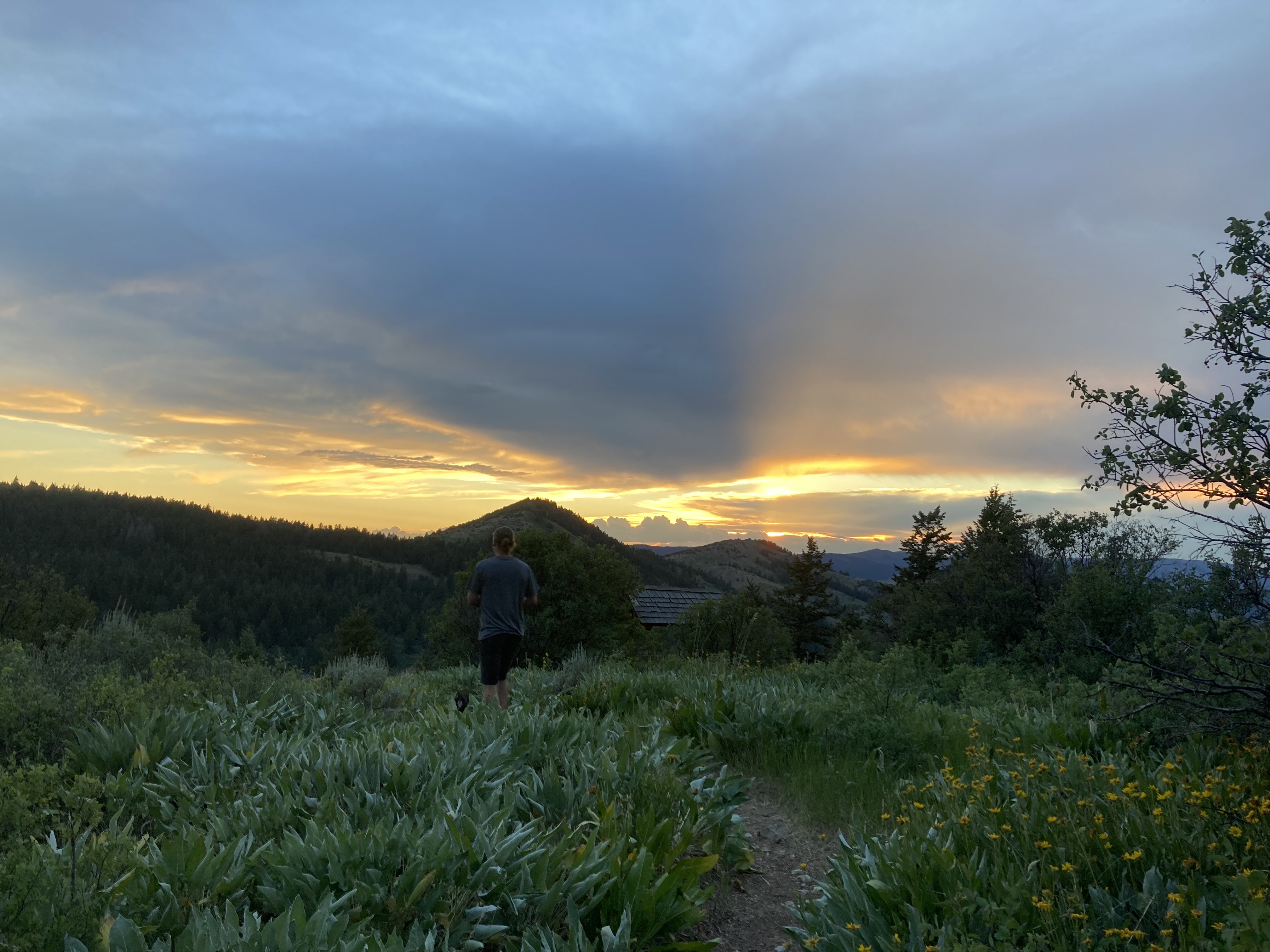 The next morning, after a short forest yoga session, I settled into ‘work from camper life’ while Mike went on a BIG ride right from the campsite. I took a short walk around the camp to stretch my legs during lunch, exploring the beautiful Scout Mountain views. Winnie took a dip in a small creek, as it was hot, and then we bumped into Mike! He had pedaled all the way up the road after a grind of a ride, so we made some lunch and Mike took a rest. After I wrapped up work, we planned to head into the town of Pocatello for some supplies & to check out the brewery scene. After heading to one that didn’t allow dogs, one that wasn’t that great, we landed at Portneuf Valley Brewing for a great pilsner before heading to the grocery store & re-stocking. That night, we grilled up some peppers, onions & brats over the open-grate grill and enjoyed an al fresco evening. After dinner we wandered to a secret spot where we watched the most beautiful sunset, with pinks and soft yellows. Camper life was alright!