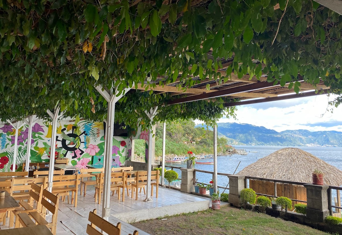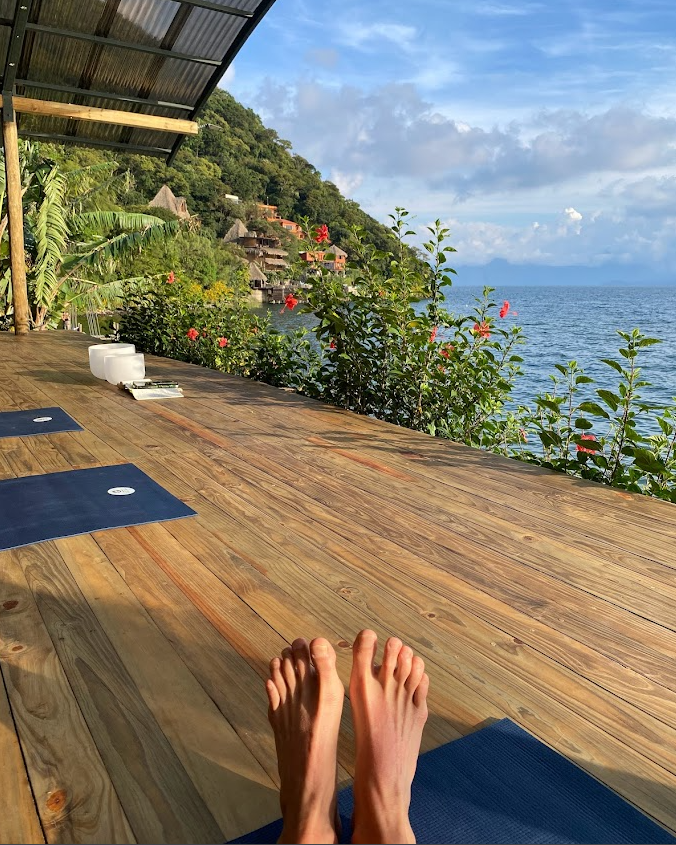 I awoke early, refreshed after the previous long day of traveling. Each day’s schedule was shared out on a group chat – and the morning had breakfast, orientation and a yoga class. Since I was up so early, I wandered towards the next town – Santa Cruz – on a path that hugged the lake. Parts were stone, parts grass, parts were makeshift bridges made from wood and a small section was large rock boulders that climbed up. The entire path had breathtaking views of the lake and the two volcanos – Volcan San Pedro & Toliman. I made it to the town, then turned back to have breakfast. Fresh fruit, granola, eggs, tortillas, beans, plantains….the spread couldn’t have been more scrumptious!