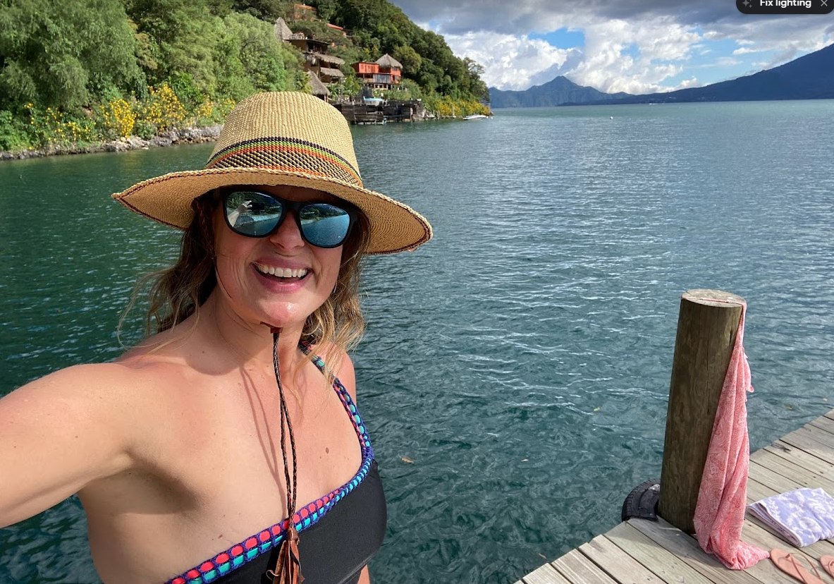 I landed in Guatemala City, went through customs & found my guide. Two other women were not far behind me, so we waited and went to the cafe in the airport. Not sure if we were heading out into the city to grab lunch, I grabbed a jamon y quesso sandwich just as the woman who was going to take us into the city, found us. I wrapped my sandwich and we headed into the busy city where motorbikes zipped in and out of traffic. We ate at a small French style restraint then headed back to the airport to meet the rest of the group – another 7 women! We piled into the shuttle and headed to Lake Atitlan. The journey would take about five hours, as the main road had closures. It was fascinating to drive through small towns and see the local flavor. Pulling over after about four hours to a lovely wood heavy restaurant to use the restroom & grab a cafe, we made the final leg of the journey to Panajachel to catch the water taxi over to Villa Sumaya. The ride took about 25 minutes and the lake was calm and the wind felt amazing on my face! Although it had been quite foggy driving in, the fog cleared so the beauty of the lake could be seen. We pulled up just as the dark was creeping in and the magic of the jungle lit by the lights from the villa was spectacular!